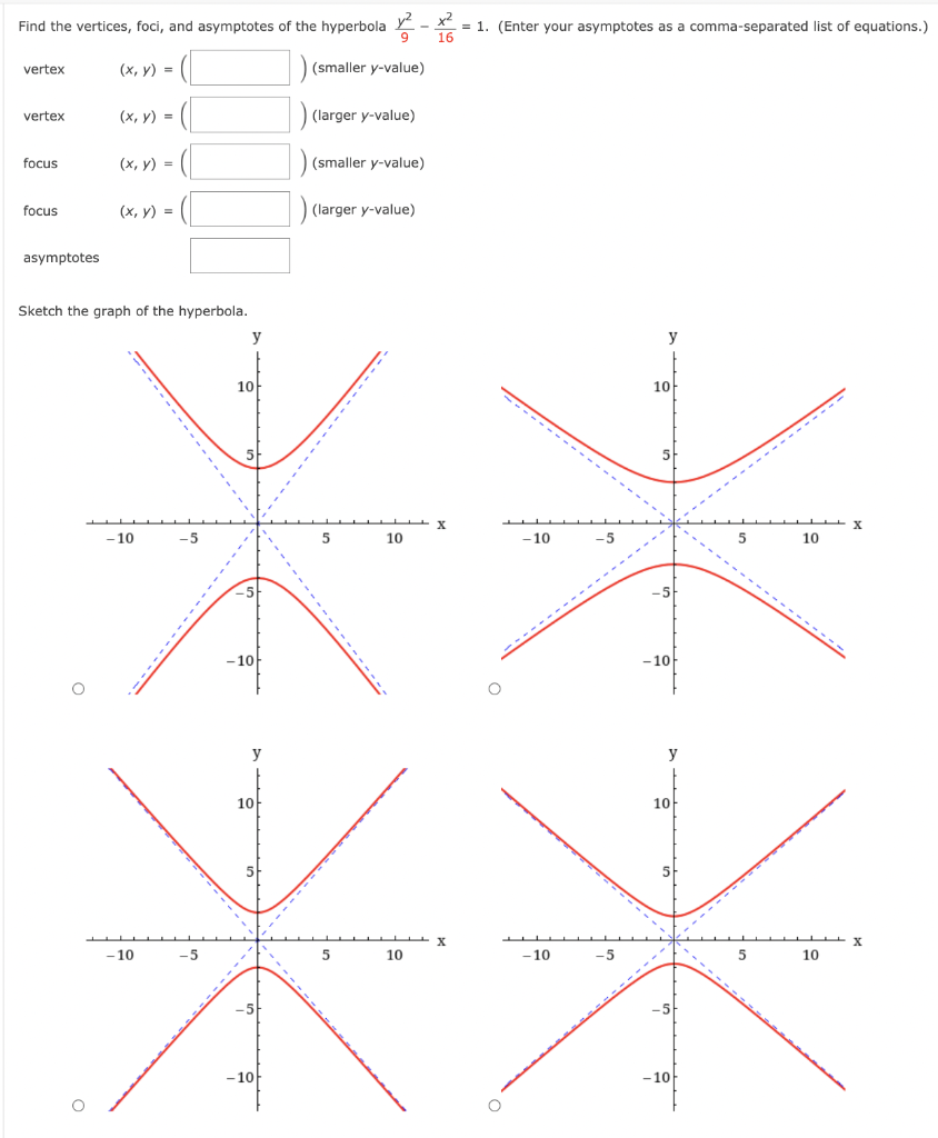 Web Learn for free about math art computer programming economics physics chemistry biology medicine finance history and more. Web The vertices of a hyperbola are the points where the transverse axis intersects with the hyperbola itself. Homework Help Solutions Looking for a little help with your homework.