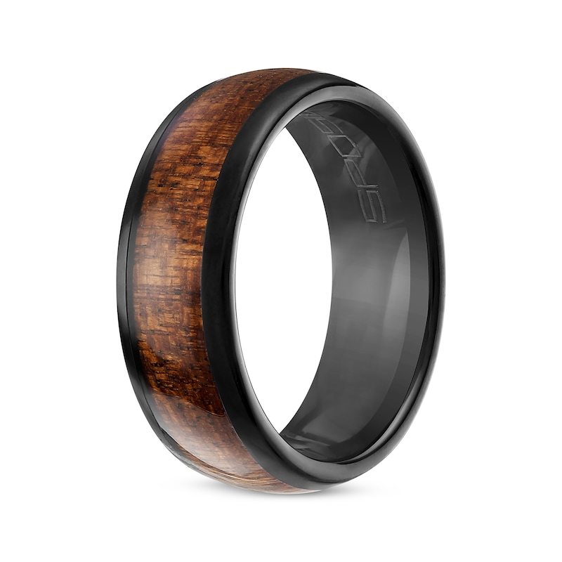 Men S Wedding Band Black Ion Plated Tungsten Carbide Wood Inlay Kay Outlet